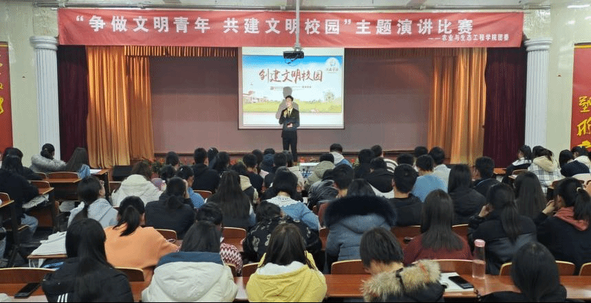 本次比赛共有8位参赛选手进入决赛,参赛选手以“争做文明青年、共建文明校园”为主题分别自行设计制作演讲PPT和视屏,比赛当中,各选手激情昂扬,精彩纷呈,现场观众的掌声阵阵响起。经过现场评委的最终打分,最终决出一等奖一名、二等奖两名、三等奖三名,“最佳口才奖”一名。