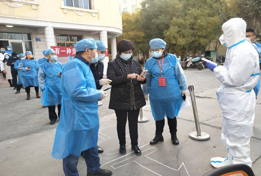 第四临时党总支书记强梅副董事长与支部全体党员同志面对鲜红的党旗,高举右拳,许下铮铮誓言,表示将以昂扬的斗志投入战斗工作,与疫情共进退,履职尽责,以实际行动来守卫师生的生命健康安全。仪式结束后,强梅对现场工作进行了检查指导,详细了解该支部包抓楼宇的情况。
